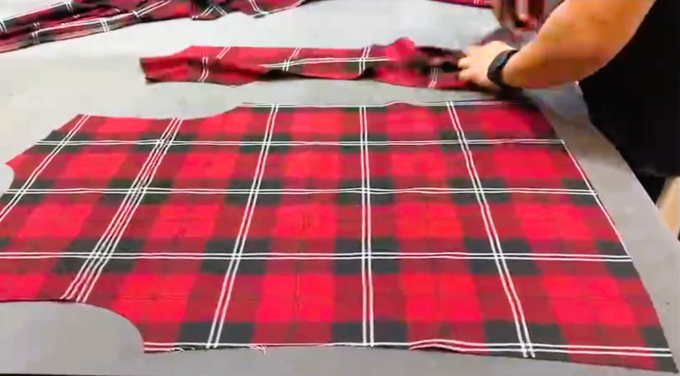Производителям одежды и других текстильных изделий из материала в клетку и полоску приходится очень внимательно относится к крою своих изделий. Рисунок на одной детали должен продолжаться на другой детали без смещения. Для точного совмещения, как правило, такой раскрой осуществляется вручную.