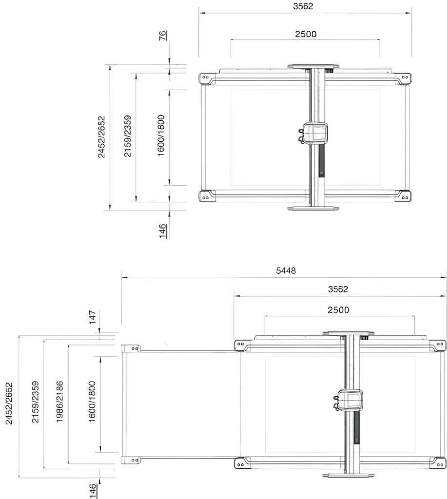 | Габаритные размеры с расширительным столом, мм (ДхШ) | 5448x2452 | 5448x2652 |